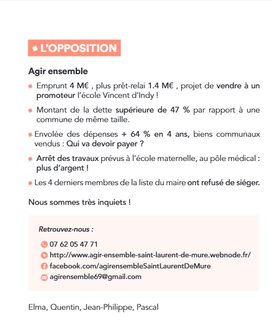 Toute présence bien que légale nous ayant été refusée , AGIR ENSEMBLE vous accueille : https://www.agir-ensemble-saint-laurent-de-mure.webnode.fr/ https://www.facebook.com/agirensembleSaintLaurentDeMure