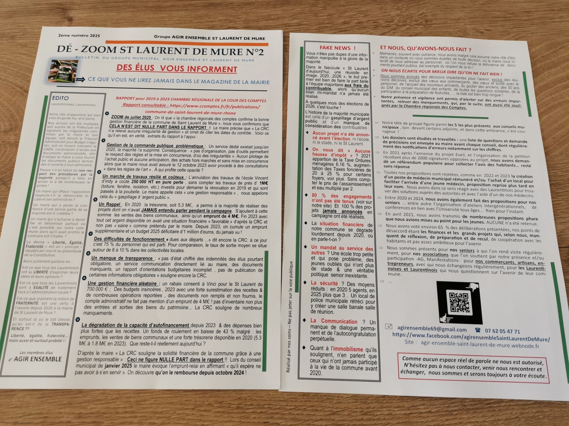 Nous vous rappelons qu'il nous a été présenté un budget 2025 négatif de - 1 M€ sans que cela ne pose de problème à la majorité. Quant à la transparence des finances publiques, notre groupe réclame depuis MARS 2025 la copie du détail des comptes de 2024 sans que nous ne l'ayons obtenu à ce jour.