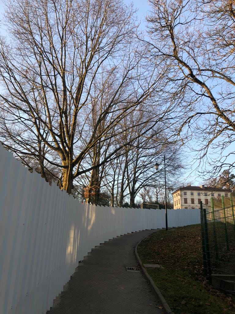 - de la destruction d'un parc vieux de 400 ans, seul poumon vert de notre commune où depuis des décennies les écoles et tous les habitants en profitent pour partager les fêtes, les promenades familiales, et où l'on avait grand plaisir à se retrouver : un véritable espace de vie