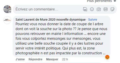 Enfin, l'argument qui consiste à dire que nous publions de vieilles photos d'arrachage d'arbre, ou qu'il s'agit d'une souche d'il y a cinq ans (confirmé soit-disant par le personnel) nous rappelons à nos collègues que le personnel d'il y a cinq ans a bien changé puisqu'il n'est plus là vu le turn-over en Mairie !