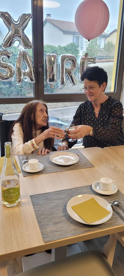 Hier Mme MASOÉRO née EYMERIAT le 19 novembre 1923 a eu 100 ANS. Connaissant bien la famille et conviés à partager un petit moment festif à cette occasion, nous tenions à lui témoigner de notre profond respect pour une vie bien pleine : son expérience de vie, son histoire et sa longévité nous rappellent que fêter son siècle de vie c'est se souvenir d'hier, profiter du présent et ne pas se préoccuper du lendemain.